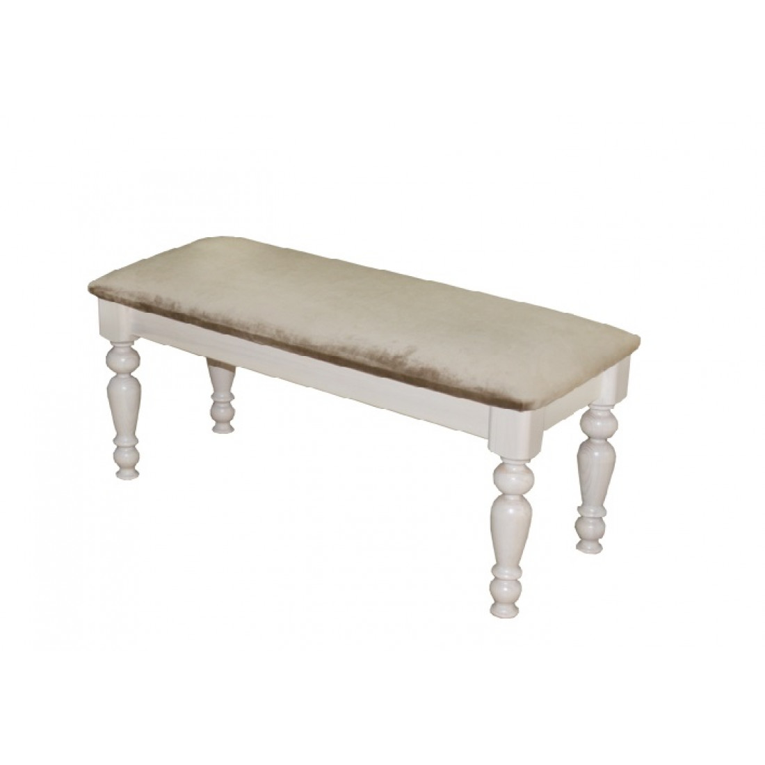 Банкетка в прихожую из массива сосны с мягким длинным сидением. Варианты цвета тонировки - Белый полупрозрачный или Орех темный