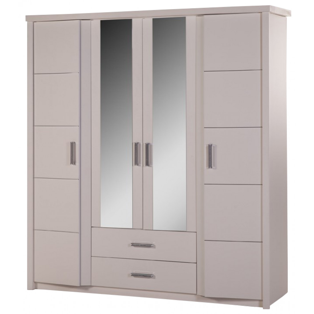 Четырехстворчатый распашной шкаф MIRA-20 (белый) серии Мира для обстановки спальни от Беллона наделен потрясающей вместительностью: в его недрах вы без труда разместите обширный гардероб всей семьи. Рекомендуем купить большой плательный шкаф также для обстановки просторной спальни – стильное оформление и элегантный дизайн создасть ощущение неповторимости и изысканности интерьерного решения всего дома «с порога».
