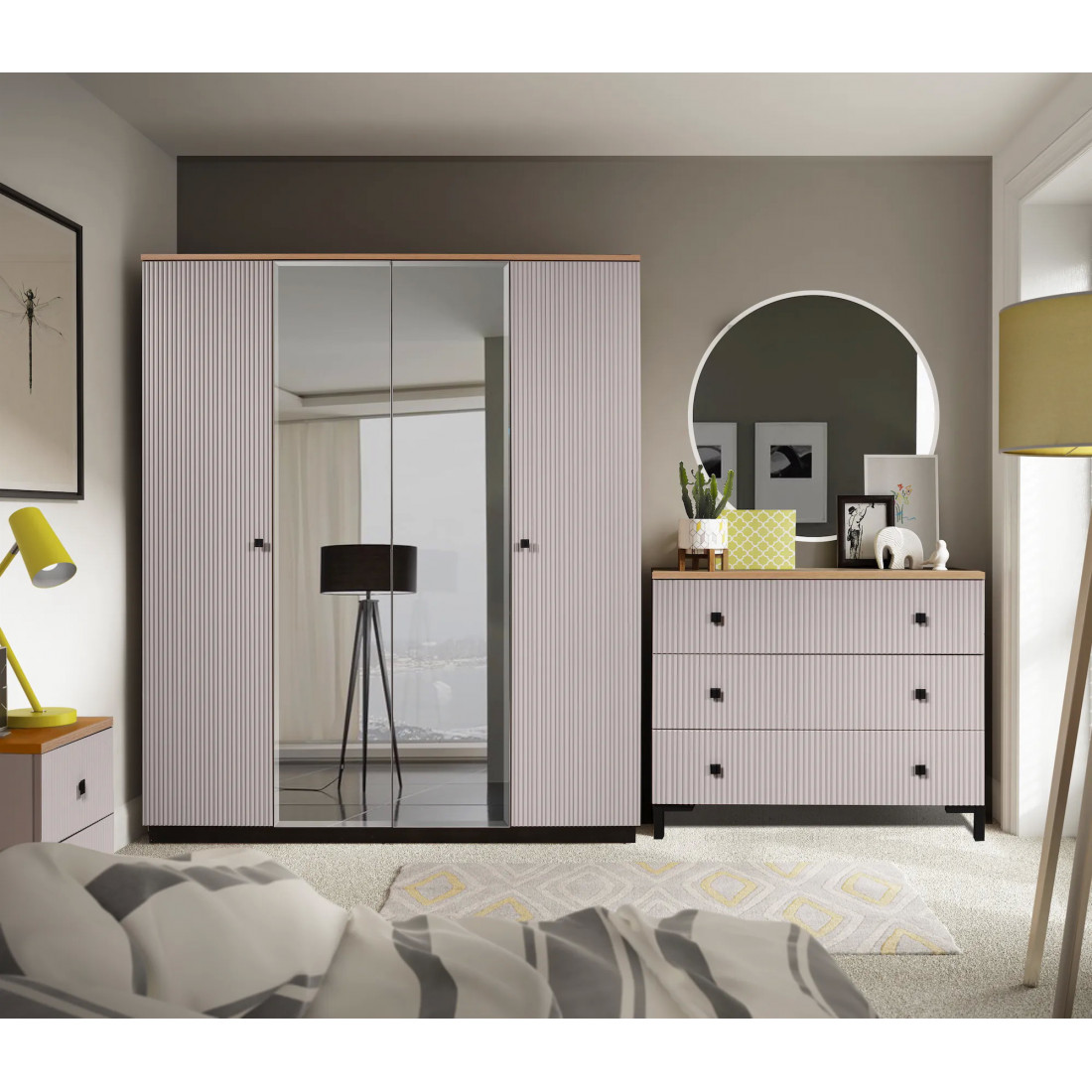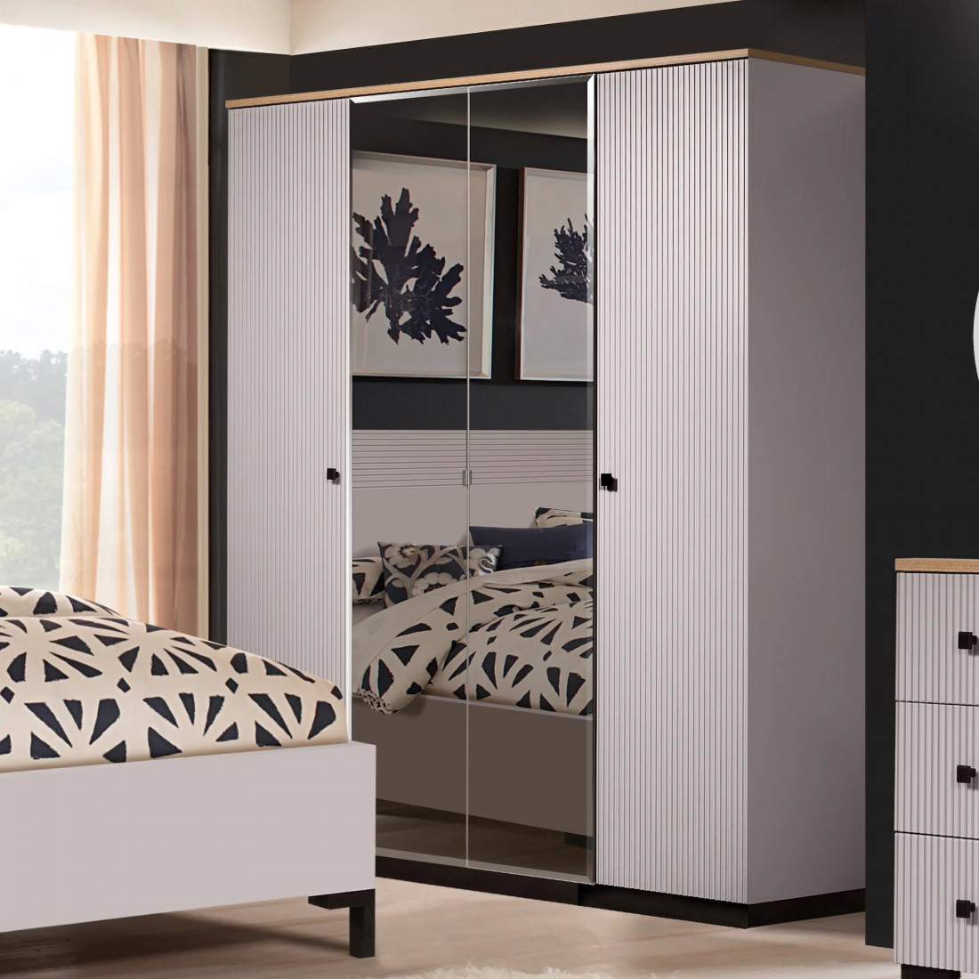 Четырехстворчатый шкаф для одежды Мадрид (Кашемир эмаль)