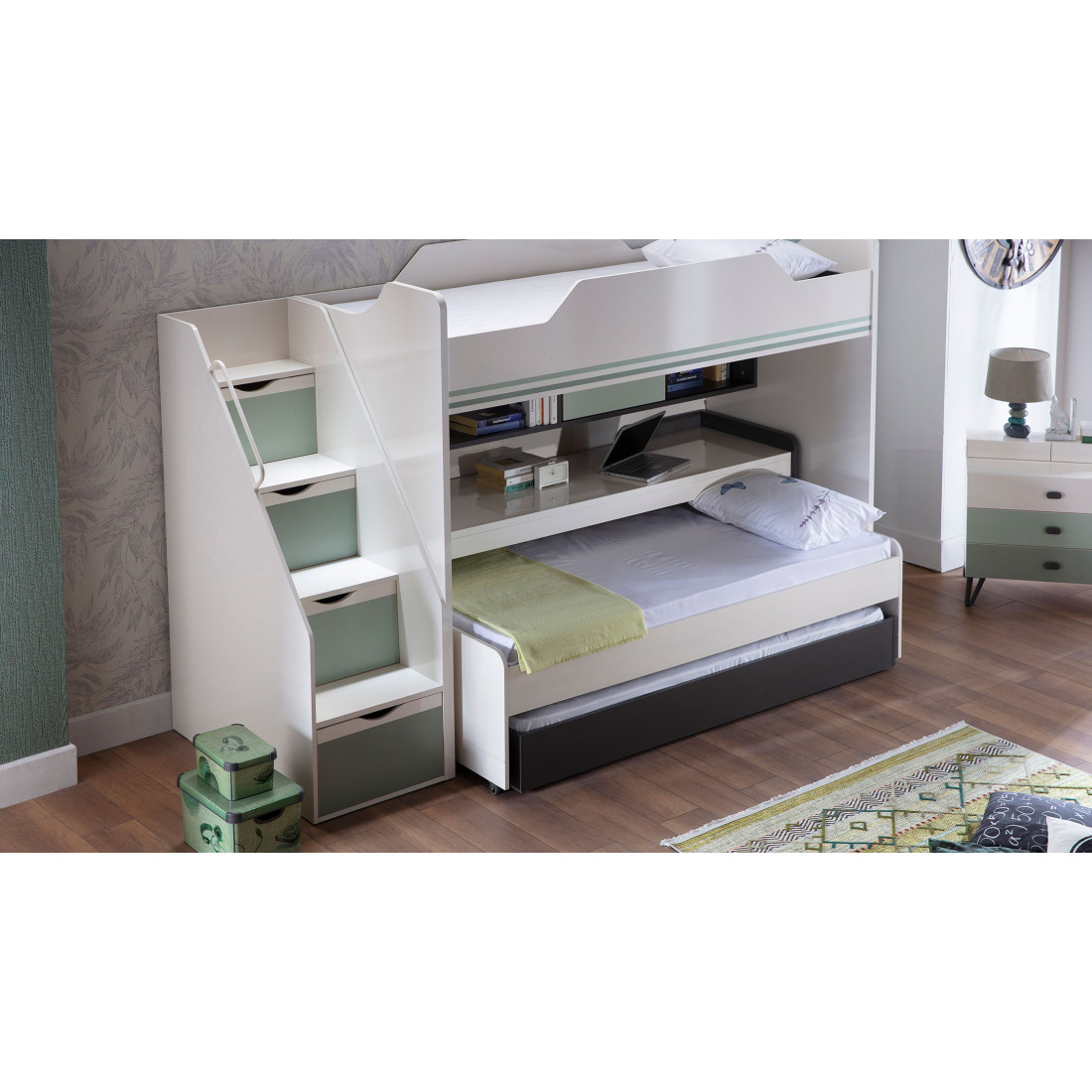 ВЕРХНИЙЯЩИК ЦВЕТА СЛОНОВОЙ КОСТИ, СРЕДНИЙ ЯЩИК СВЕТЛО-ЗЕЛЕНЫЙ,НИЖНИЙ ЯЩИК ТЕМНО-ЗЕЛЕНЫЙ.