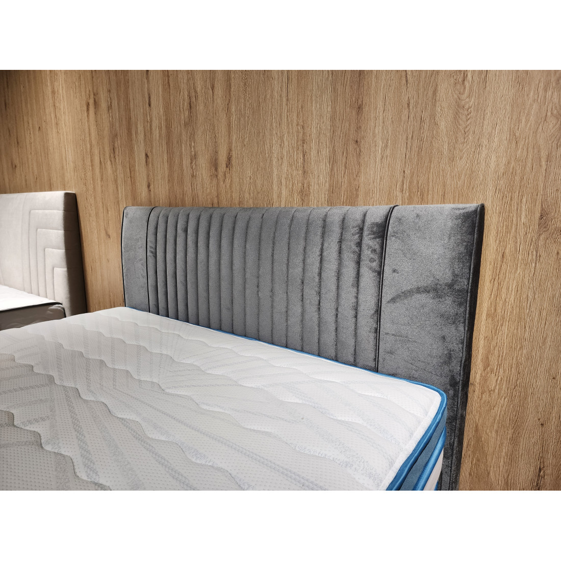 Спинка кровати SONATA, рамочной щитовой конструкции, каркас спинки на основе полуфабрикатов из материалов, плиты ЛДСП или ДСП т.16-18, брусков из пиломатериала, ДВП, заглушки картон технический. Настил панно поролон т.20мм. Чехол спинки ткань мебельная с центральной декоративной стежкой на основе поролона т.18мм, синтепона, спанбонда. По краям от декоративной части чехол дополнительно декорирован кантами из пластм .шнура ф6мм в ткани основного цвета. Обивка с задней стороны спинки ткань техническая или спанбонд.
