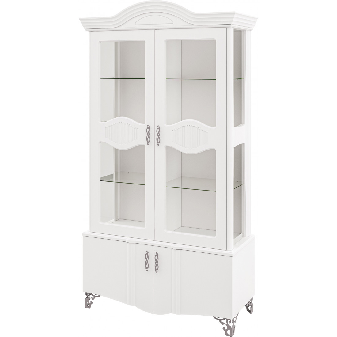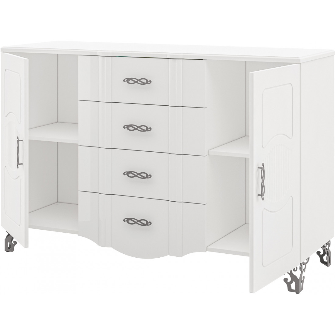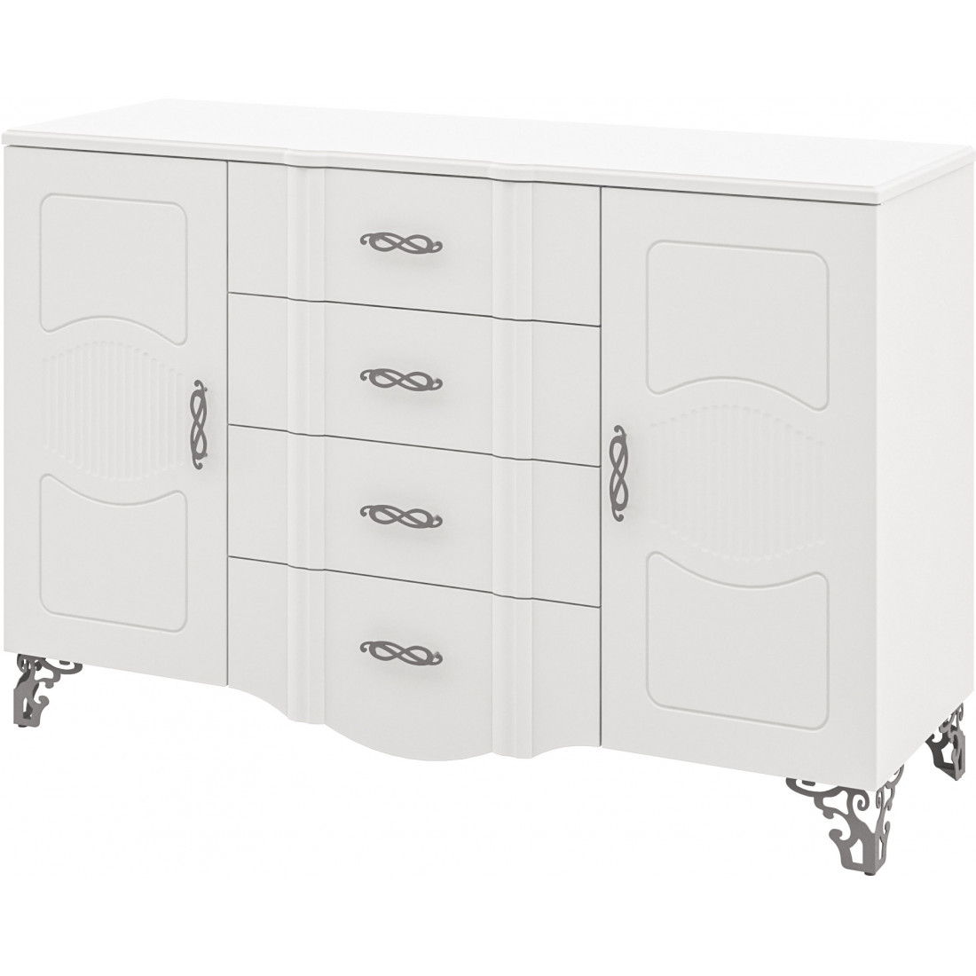- Ручки – металлические, фигурной формы, перекликающейся с рисунком фрезеровки.