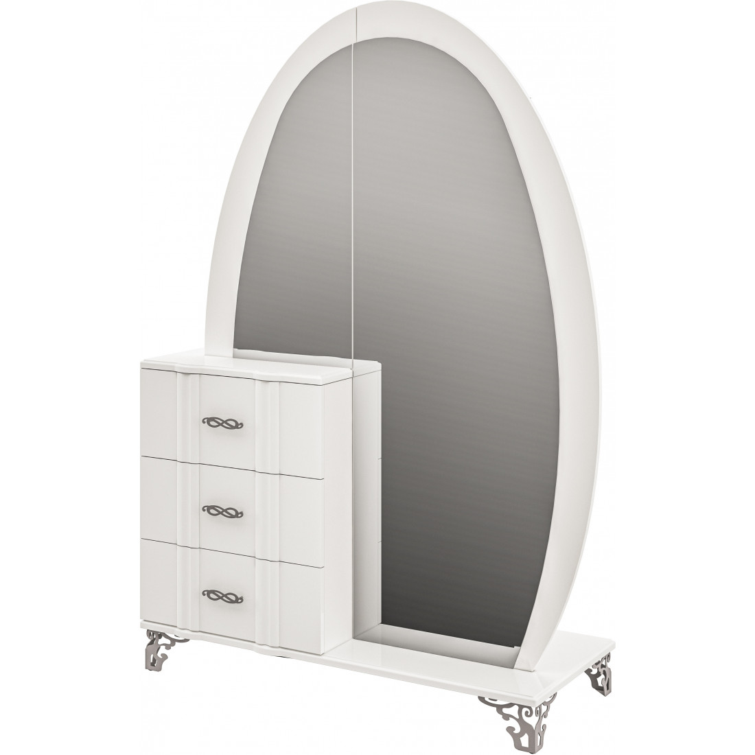 Комбинированный шкаф София МН-025-10 серии София от Мебель-Неман – очаровательная и неповторимая изюминка серии, способна преобразить классический интерьер до неузнаваемости. Округлой формы большое зеркало превратит спальню в роскошный аристократичный будуар, а тумбовые ящики заменят функционально комод. Купить комбинированный шкаф-трюмо – создать атмосферу элегантности и шарма в доме.