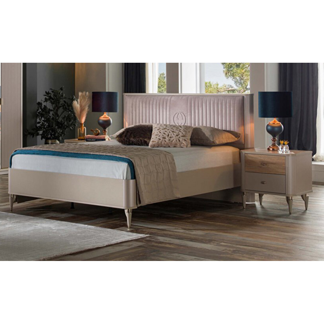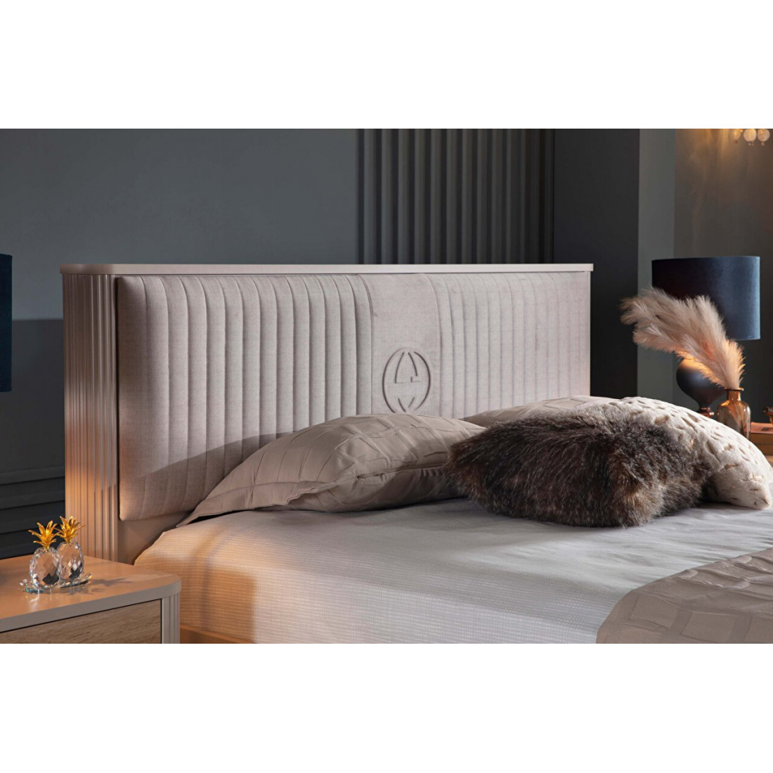 Кровать Санвито SANV-26 оригинальная по дизайну турецкая кровать в теплых постельных тонах из коллекции SANVITO. Мягкая спинка кровати декорирована тканью с вертикальной прострочкой. Скругленные боковины спинки с рифленой поверхностью создают объемный эффект. Кремовый цвет кровати прекрасно гармонирует с золотистыми вставками на витиеватых ножках. Боковины корпуса так же имеют округлую безопасную форму. Кровать представлена тремя размерами спальных мест: 150*200, 160*200, 180*200.