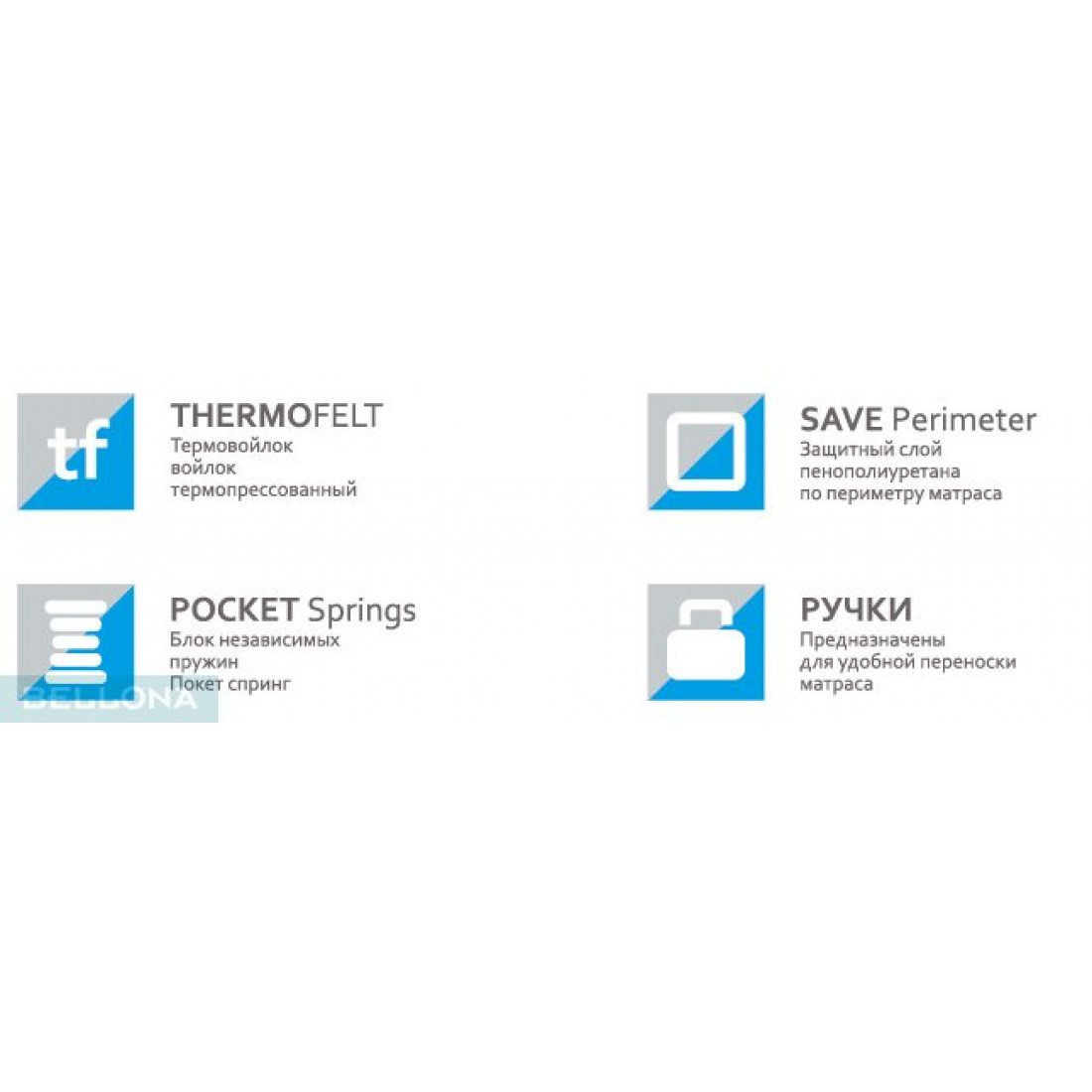 5-ти зональный пружинный блок позволяет достичь анатомически правильного положения позвоночника, при этом мышцы спины полностью расслаблены и тело отдыхает. На утро ощущения бодрости и энергичности которого хватит для очередного дня полного событий и эмоций. Сочетание разных зон жесткости пружинного блока "Pocket springs" позволяет повторить изгибы вашего тела, давая возможность принять правильное положение позвоночнику, предоставляя Вам максимальный комфорт и улучшенный ортопедический эффект.