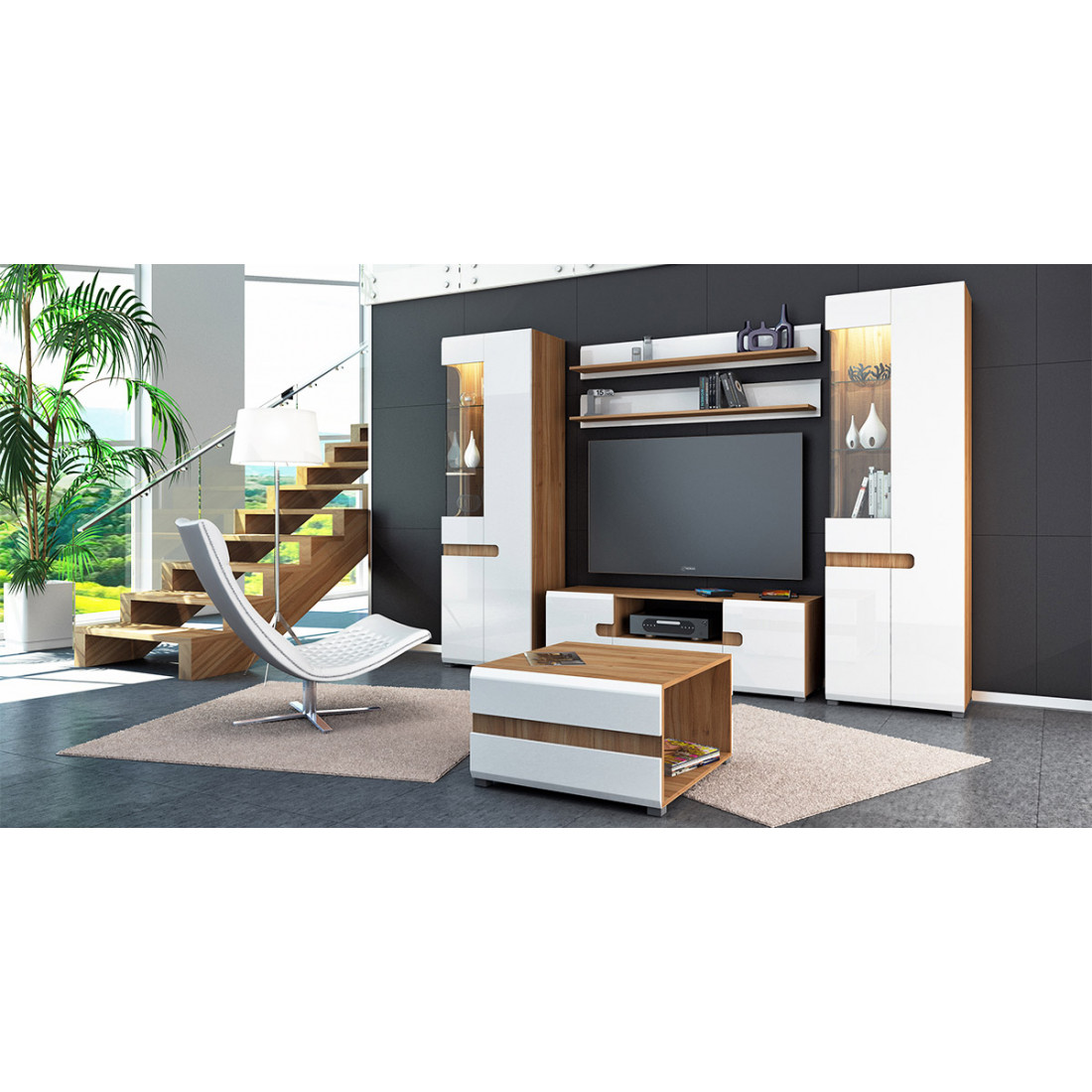 Цветовое исполнение гостиной - Дуб сонома/белый полуглянец.