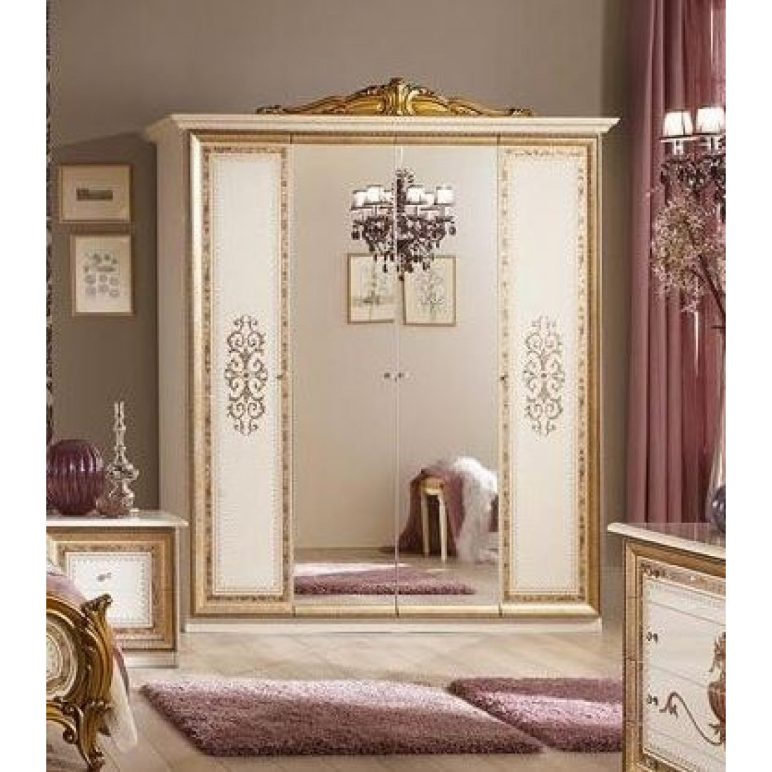 Спальня Анита (беж) от Российской фабрики «ДИА мебель» Выполнена в бежевом цвете с отделкой золотых фасадов. Классический стиль придают интерьеру неповторимую уникальность и роскошь. Изгибающие линии кровати и зеркала придают легкость и воздушность спальне. Коллекция "Анита" придаст вашей спальне экстравагантность и принесет свежие нотки в Ваш дом.