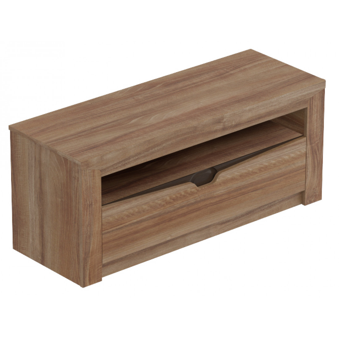 Тумба под ТВ Соренто с ящиком дуб стирлинг порадует ценителей лаконичных форм своими простыми, современными линиями и приятной светлой деревянной текстурой.